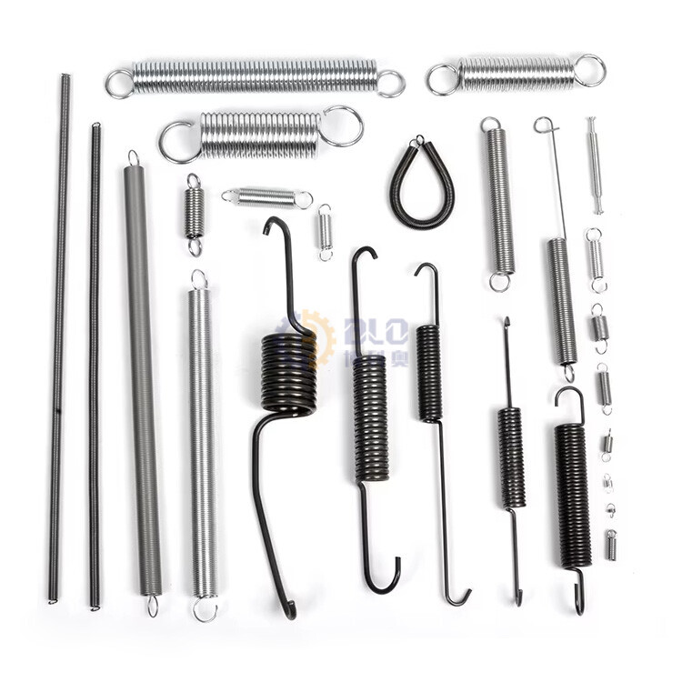 Extension Springs: Designed to resist a stretching force. The coils are typically wound tight together, and the spring includes loops or hooks on the ends. Applications: Garage doors, trampolines, weighing scales.